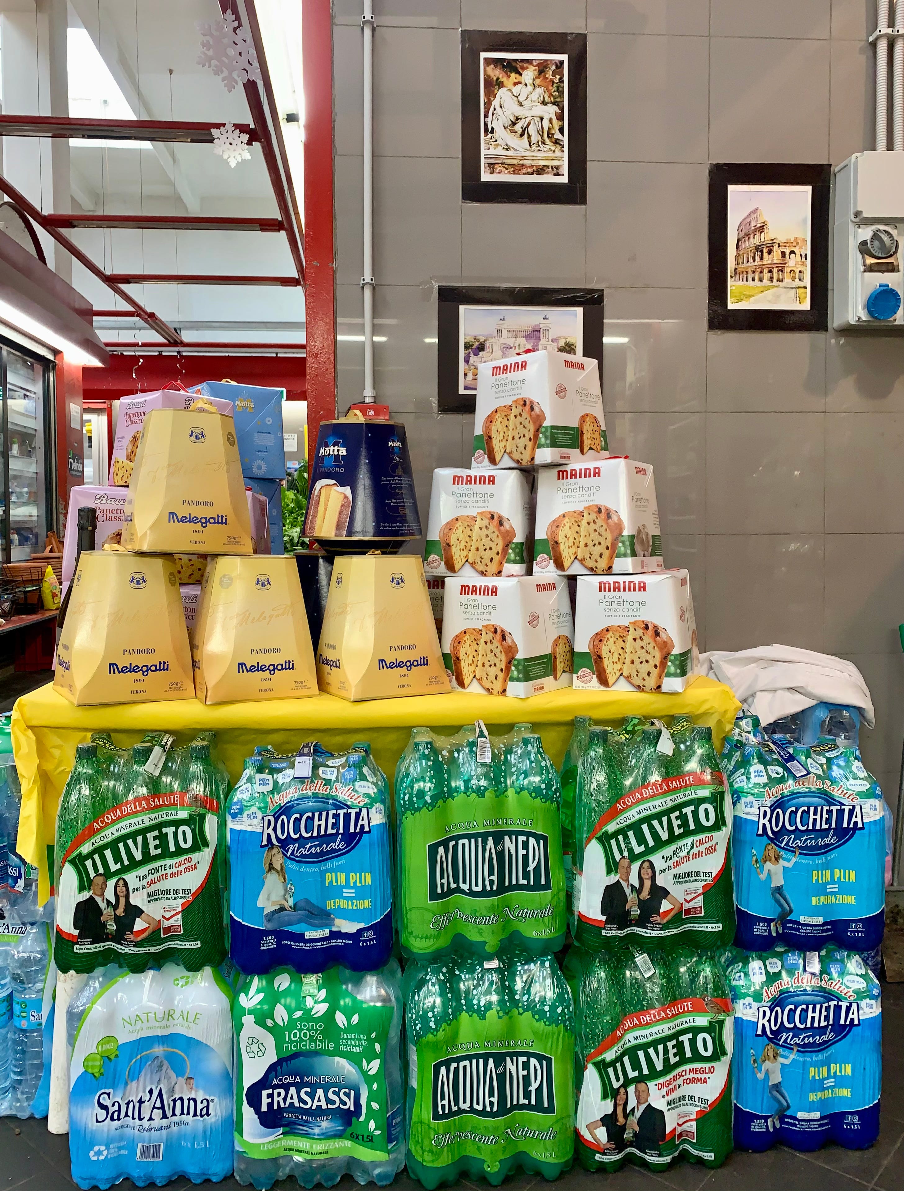 There is something so comforting/Italian about the grocery store panettone display, mixed with the water bottles. A great list as well!!